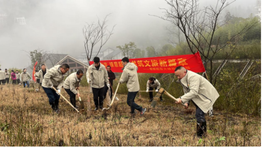 图为“大峡谷事业部”党员开展“义务植树”活动