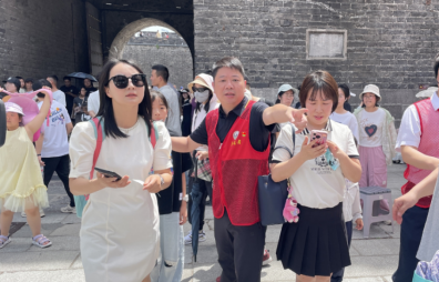 图为“党员示范岗”覃枫在宾阳楼开展志愿服务