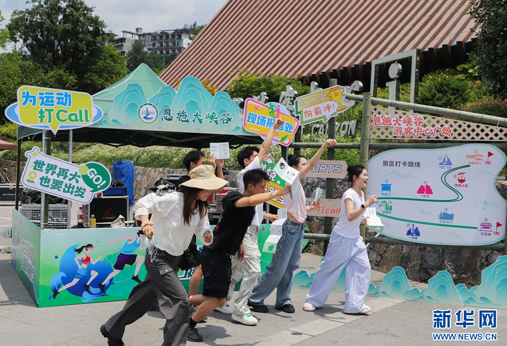 近日,湖北恩施大峡谷景区将运动健康理念与自然景致相融合,开展以“峡谷燃脂季·健康享瘦行”为主题的特色活动,让游客在欣赏壮美风光的同时,主动参与运动健身,给游客带来别样的夏日体验。