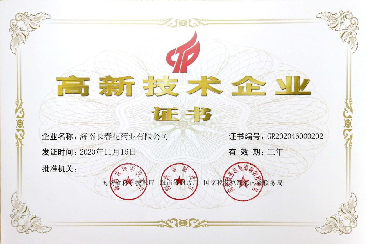 《高新技术企业证书》是对长春药业近年来持续加大研发力度的最好褒奖,也是双色球预测