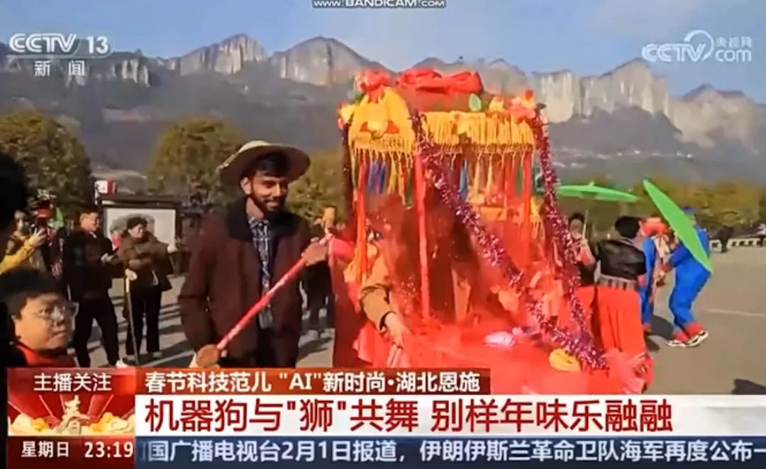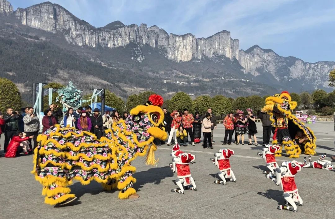 恩施大峡谷景区,舞狮、划彩龙船、摆手舞、土司老爷祈福等传统民俗表演轮番上演,精彩纷呈。土家幺妹儿智能机器人“小青”大秀才艺,与游客亲密互动,体验科技与传统文化的完美融合。机器狗身着新春定制服装,为游客献上欢快舞蹈,让游客们在欢笑中感受到了浓浓的年味。