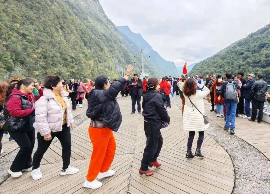 恩施大清江红花峰林景区,在游客中心和游船上设置春节主题打卡点,四处洋溢着浓浓年味。游客们在游船上载歌载舞,和身着民族服饰的土家幺妹们合影留念,享受着新春的喜悦与幸福。