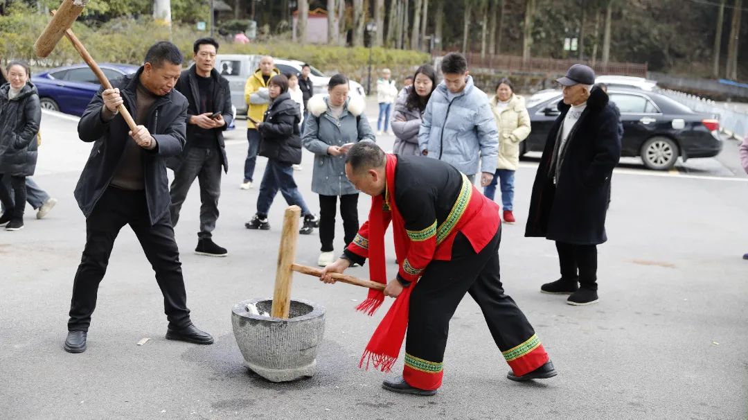 坪坝营景区,披上了喜气洋洋的春节盛装,喜迎八方游客。景区内设置了打糍粑体验环节,不少游客亲自参与捶打糯米,感受传统手工艺的独特魅力。景区还为游客们准备了祈福墙,游客们将写下的福字贴在墙上,寄托着对新的一年美好祝愿。