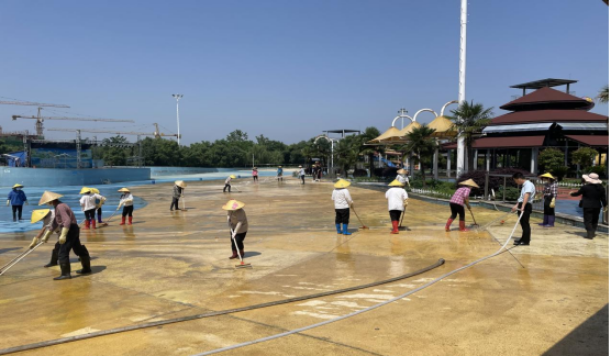 悦兮半岛党员责任区党员突击队在水上乐园开园倒计时阶段,克服工期紧张、技术瓶颈等挑战,连续12个昼夜坚守一线,联合多方带动全员提前完成设备升级、隐患整改及景观改造等筹备工作。
