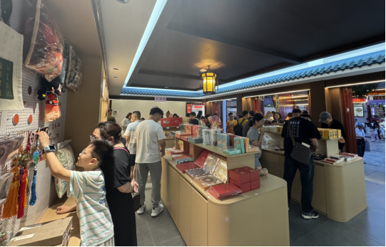 图为游客正在“荆州手信”文创店购物