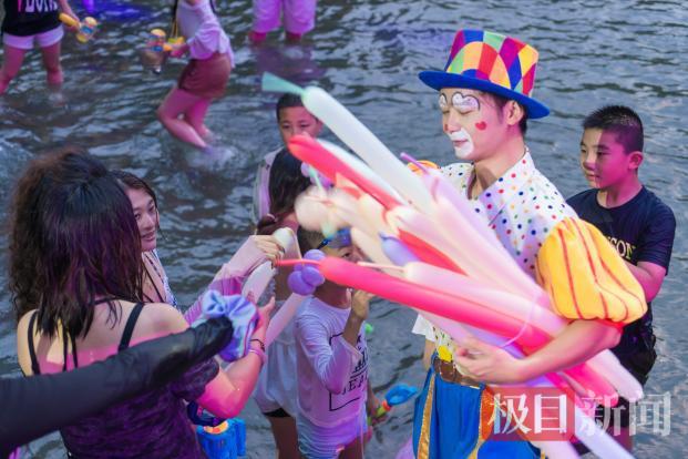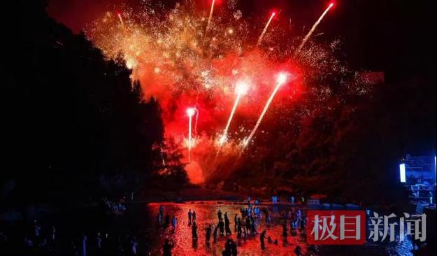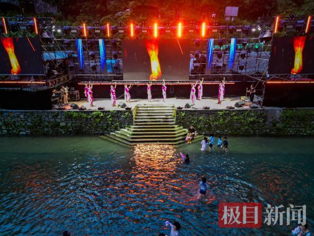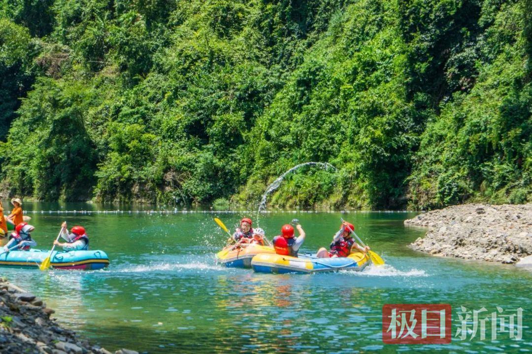 为了让游客“白天玩不够,晚上不想走”,景区还创新推出“电音泼水节”。唐崖河畔搭起DJ台,动感音乐一响,游客们拿起水枪、水瓢加入泼水大战,声浪与水花交织成夏夜的欢乐图景。这一活动不仅填补了景区夜游空白,还带动了周边餐饮、住宿消费,成功打造“日漂夜玩”的全时段体验模式,不少游客直言“玩一天根本不够”。