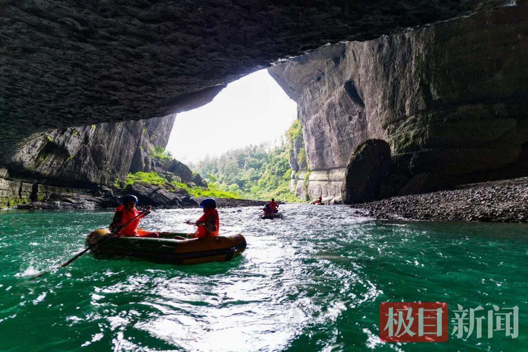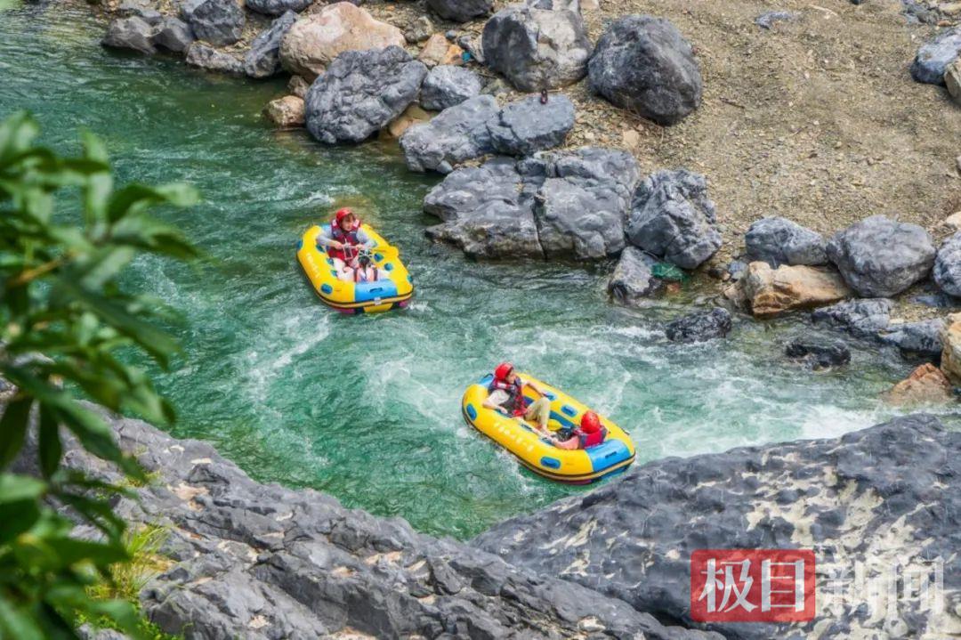 “导游不仅讲解专业,还会帮我们拿东西,特别贴心。”从武汉来的游客张先生说,景区的服务让他印象深刻。为了提升游客体验,黄金洞景区推行“全员微笑服务”:导游团队每天平均徒步12公里,在溶洞与河道间穿梭,用生动的讲解带游客了解地质故事与历史文化;护航队、陪漂员全程跟随,及时解决游客遇到的问题;游客中心工作人员耐心规划行程,餐饮住宿服务人员热情推荐当地美食……这些细节不仅收获了游客好评,还让许多人成为回头客,甚至主动在社交平台分享游玩经历,为景区免费“打广告”。