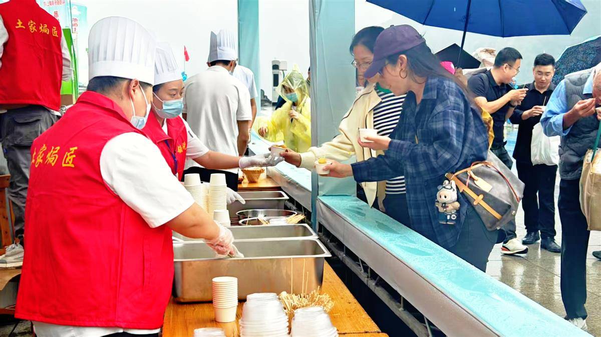 湖北日报讯(记者陈义超、通讯员覃丹、杨金艳)“再来一碗,味道真不错。”10月1日上午,长阳清江画廊景区广场,带着一家三口从河北自驾来的张先生大快朵颐地吃着炕洋芋,喝着魔芋粉丝汤说道。十一假期首日,景区内“土家美食嘉年华·万人魔芋宴”活动拉开帷幕,游客们不仅欣赏到了烟雨如画的清江美景,还能免费品尝到独特的土家美食。